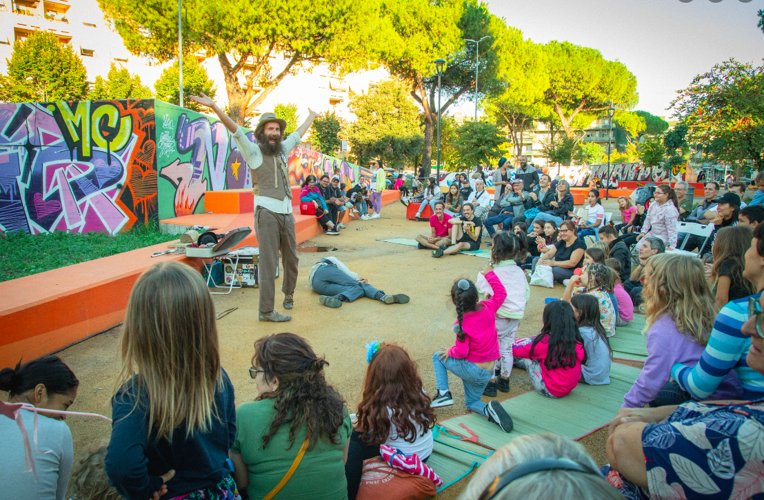 La piazza del quartiere come luogo in cui ritrovarsi, riconoscersi, tornare a sentirsi parte di un tutto. Fare comunità, tutti insieme, anche attraverso la condivisione della spensieratezza. Come sosteneva Rudolf Steiner: <<Una vita sociale sana si trova soltanto quando nello specchio di ogni anima la comunità intera trova il suo riflesso, e quando nella comunità intera le virtù di ognuno vivono>>.