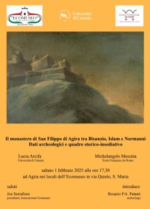 La frontiera arabo-bizantina. Sulla necessità di ulteriori approfondimenti ha posto l’accento Lucia Arcifa:<<Agira è un luogo che varrà anche in futuro la pena di esplorare, perché qui ci sono possibili risposte peculiari a quello che appare un modello che abbiamo cominciato a intravedere nell’area sud-est della Sicilia. Il monastero di San Filippo di Agira avrebbe bisogno di un’analisi dettagliata per capire ancora molte cose della fabbrica: mi sembra che l’attenzione sul monastero in sé si debba ampliare al contesto complessivo. Proprio nella fase che definiamo della frontiera arabo-bizantina i monasteri, nell’ambito di una fortificazione complessiva dell’insediamento e della nascita di questi castra che dovevano difendere il territorio, acquisiscono un ruolo importante. Mi piacerebbe anche approfondire la questione relativa al castello: non mi stupirebbe scoprire che la zona del castello viene fortificata in un momento coevo alla presenza del monastero. I due aspetti non mi sembrano, almeno in via ipotetica, totalmente distanti>>.