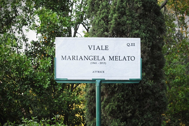 Dal 4 luglio, incamminandosi in direzione della Casa del Cinema, sarà possibile percorrere viale Mariangela Melato. Uno degli splendidi viali che si snodano all’interno di Villa Borghese, a Roma, è stato infatti intitolato ad una interprete iconica e anticonformista del nostro cinema. Al taglio del nastro erano presenti i rappresentanti delle istituzioni e del cinema, oltre agli amici di una vita: il sindaco Roberto Gualtieri, la presidente del Municipio II Francesca del Bello, Anna Melato, sorella dell’attrice, Giorgio Assumma, presidente dell’Associazione Mariangela Melato, Renzo Arbore, Michele Placido, Giancarlo Giannini e Gabriele Lavia. Soddisfatto il primo cittadino:<<Siamo davvero felici di dedicare un viale nella bellissima Villa Borghese a una delle più grandi attrici italiane e mondiali, che ha saputo regalare al mondo interpretazioni memorabili in pellicole che hanno segnato un’epoca, raccontando un’Italia in trasformazione. Mariangela Melato ha emozionato, fatto sognare e pensare milioni di donne e di uomini>>.